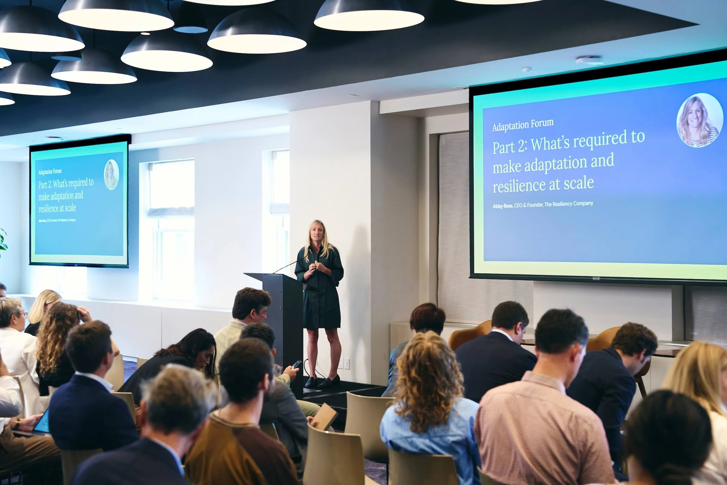 CEO & Founder Abby Ross speaking at The Adaptation Forum, hosted as part of Climate Week NYC on September 22